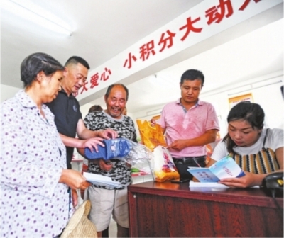 胡勝是武漢市民政局派往八秀村的聯絡員,他介紹,愛心超市的服務對象主要是本村的建檔立卡貧困戶,以及村里常住的低收入家庭。建檔立卡的貧困戶每年基礎積分為100分,結合貧困戶實際情況,由駐村工作隊、村委會和村民代表組成評定小組,每月末實行量化打分,分數將等值作為積分卡每月的充值依據,全年累計積分最高700分。