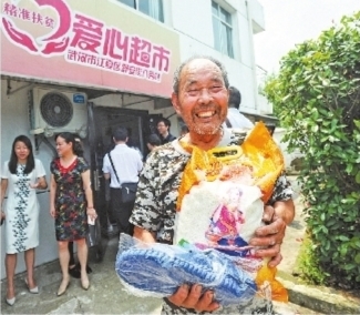 這家超市是武漢市民政局打造的首家公益性扶貧“愛心超市”。截至目前,該超市運行已有9個月,這“積分換購”的模式得到了貧困戶的認可,也得到了市扶貧辦公室的肯定,今年將有22家“愛心超市”開進各個貧困村。