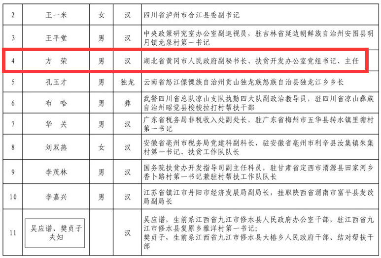入選貢獻獎的湖北省黃岡市人民政府副秘書長、扶貧開發辦公室黨組書記、主任方榮。