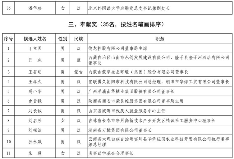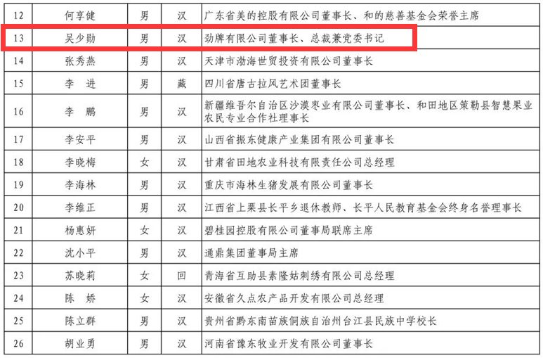 入選奉獻獎的勁牌有限公司董事長、總裁兼任黨委書記吳少勛。