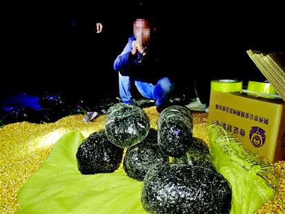 圖為:民警在玉米中發(fā)現(xiàn)毒品
