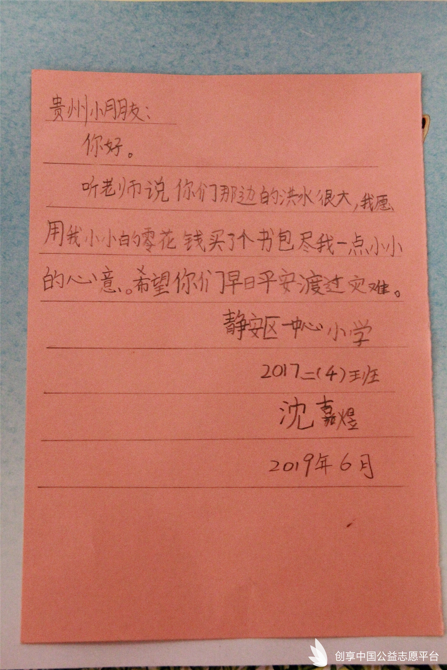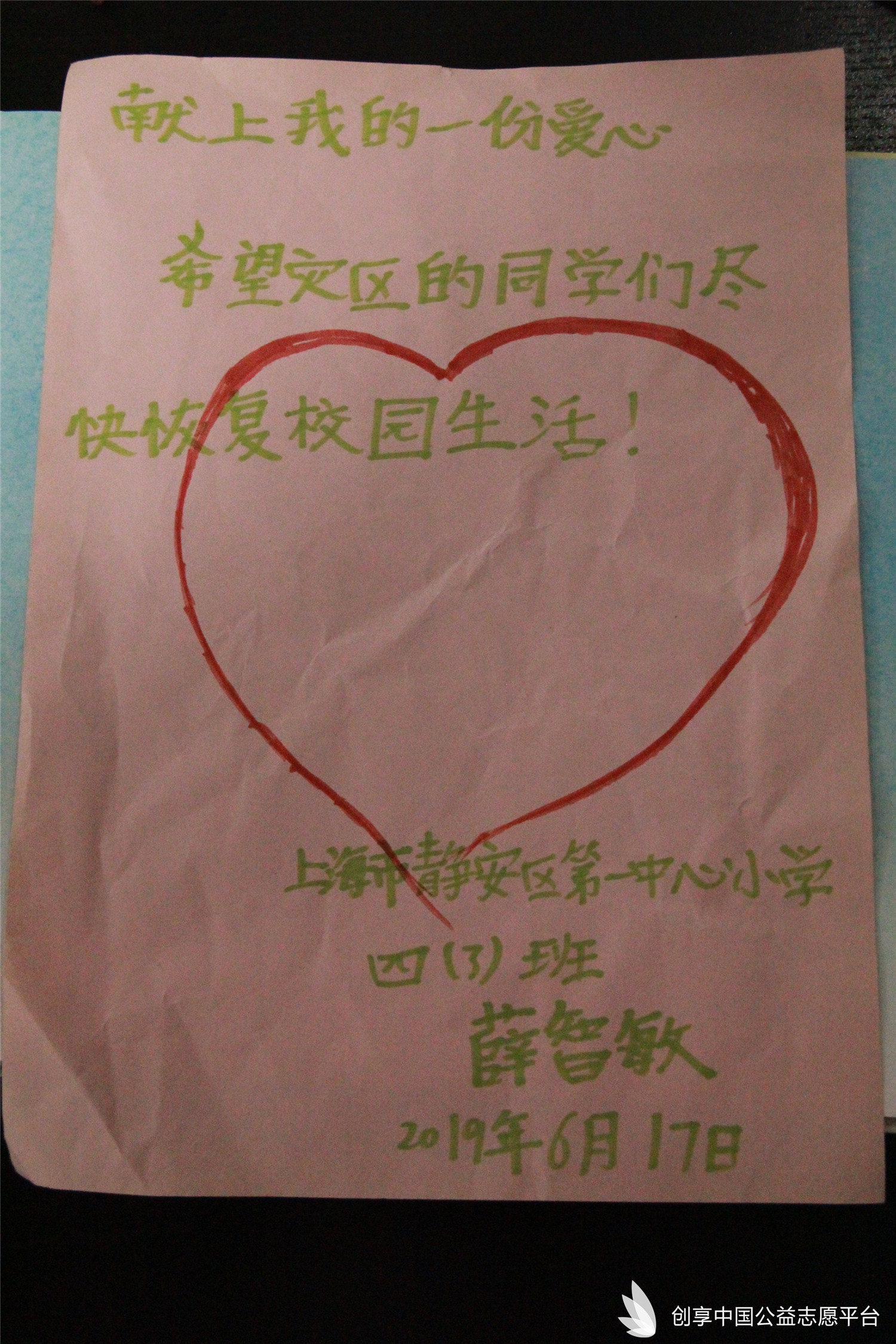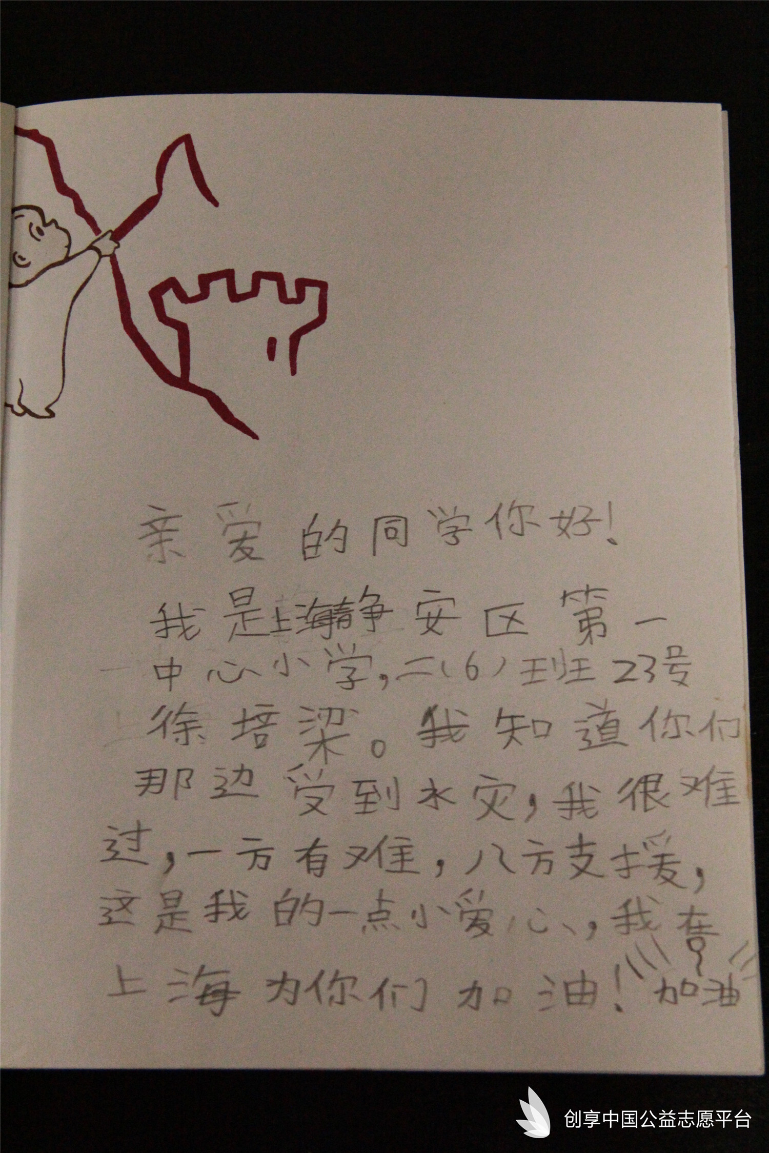 驚悉這一消息后,創享中國公益志愿平臺非常關注長順縣受災學校的情形,聯合上海市靜安區第一中心小學發起『愛心書包/圖書』捐助活動,在學校領導和行政部門的大力支持下,雖然正值放假前的考試周,但全校師生面對災區救援熱情高漲,小隊員們都特別的希望可以通過自己一份心一份力,來支持到遠在1577公里之外的貴州省長順縣遭受水災的小伙伴們。