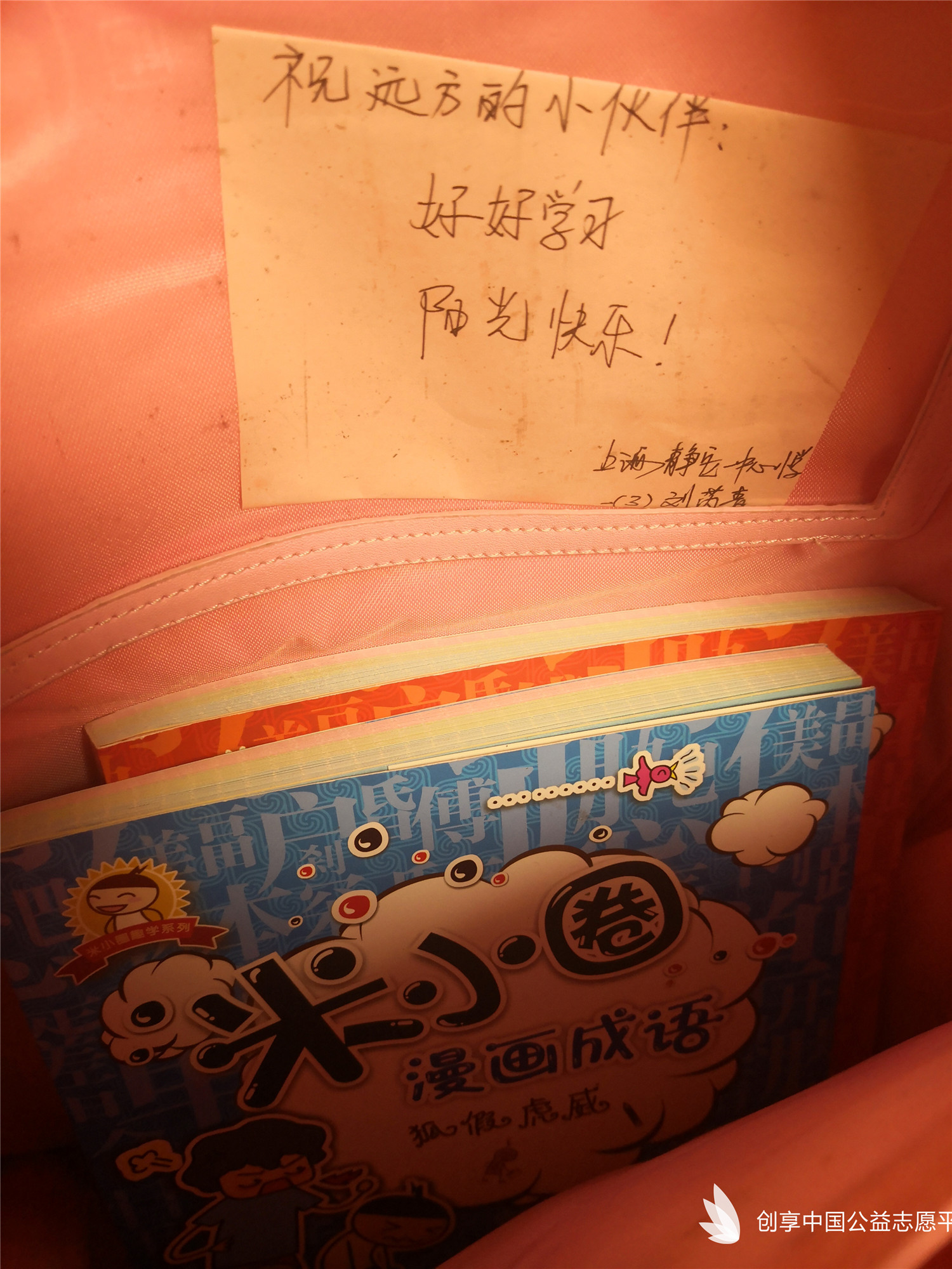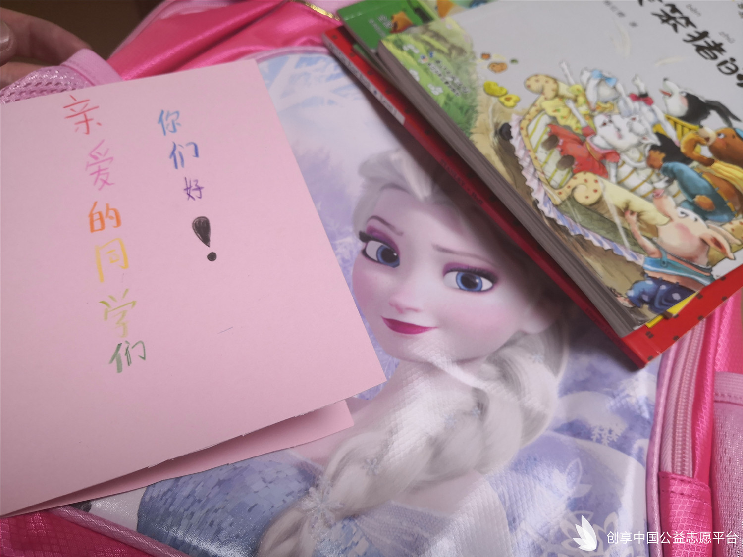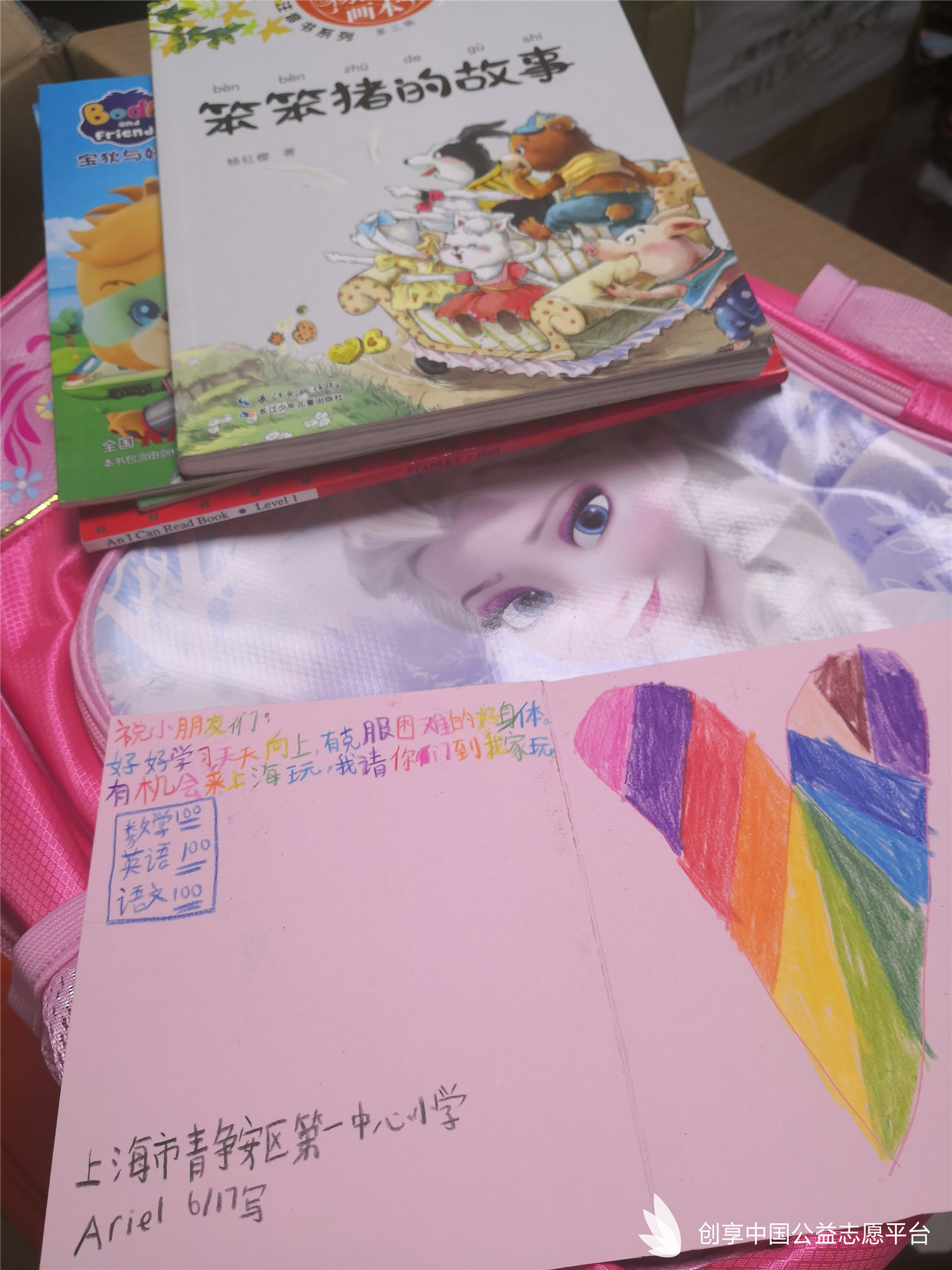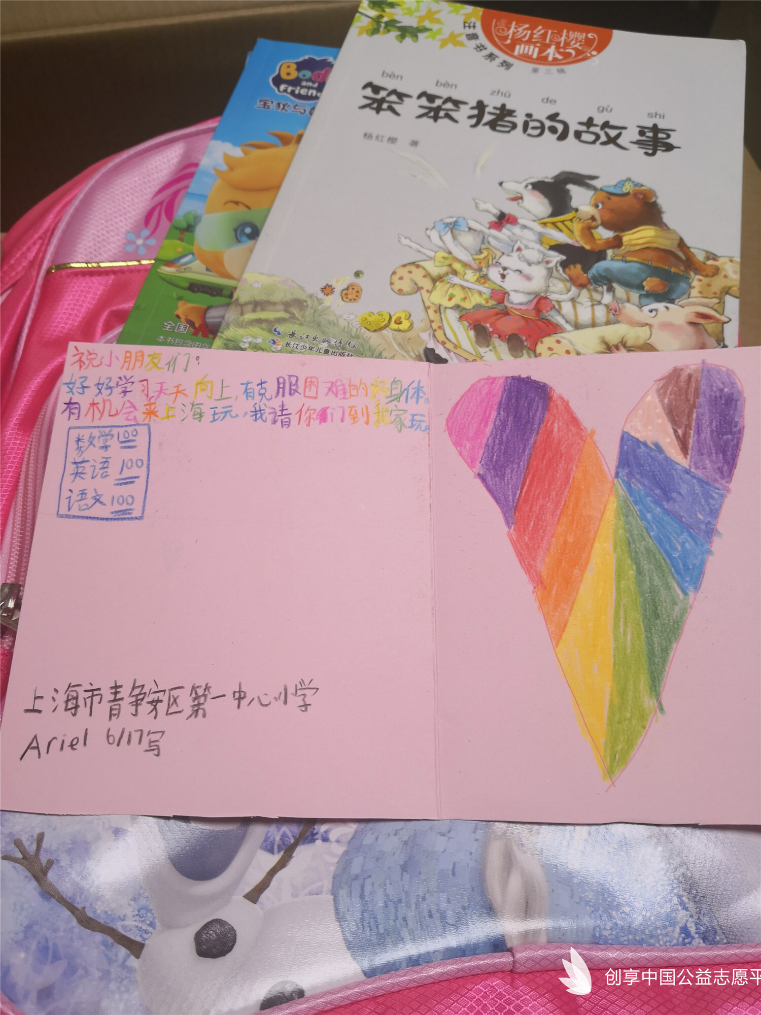 在學校的號召下,每位小隊員在捐助書包的時候,還特別放了喜歡的圖書或文具,我們特別記錄了整理時打開書包時候的驚喜。
