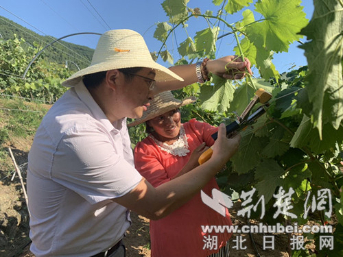 他給記者舉例:5組的肖文有想發展養羊產業,村委會不僅幫助爭取小額貸款政策支持,還邀請市畜牧局專家教授養殖技術,讓他免費領取牲畜藥品;2組貧困戶段大軍常年在家務農,家庭負擔沉重,經過村委會安排就近就業,他和老伴都成為葡萄基地工人,年收入從原先不到10000元增加到20000多元。
