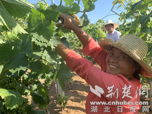 據壽康月亮湖生態農業有限公司副總經理翁定群介紹:“我們在這里流轉400畝土地種植葡萄,本村群眾不僅能每年得到流轉費,還能掙工資,同時還把家里也照顧了,該養豬的繼續養豬。僅去年一年公司給群眾支付的流轉費和工資都有100萬元,老百姓見到了實惠,也都愿意在基地里打工。”
