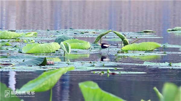 “凌波仙子”水雉在月湖公園荷塘中活動場面。市民姚波攝
