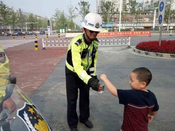 丁靖峰和同事們正要推辭時(shí),小男孩的母親走了過來。她告訴丁靖峰,不管是冰天雪地,還是高溫酷暑,孩子上學(xué)放學(xué)時(shí)候,在大街上總能看到交警叔叔疏導(dǎo)交通的忙碌身影,孩子希望長大以后也能成為一名交警。最近,天氣越來越炎熱,孩子一直念叨著要親手給交警叔叔送上一瓶水,送上一份清涼,來表達(dá)自己小小的心意,所以今天就帶著他過來了。