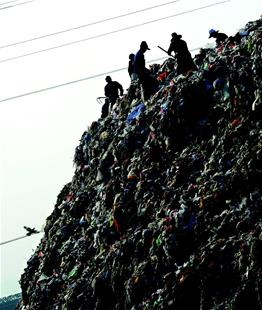 圖為2012年12月24日,填埋場(chǎng)垃圾最高近7米