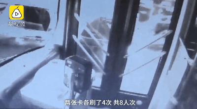 她捏著兩張公交卡向刷卡機(jī)走去。