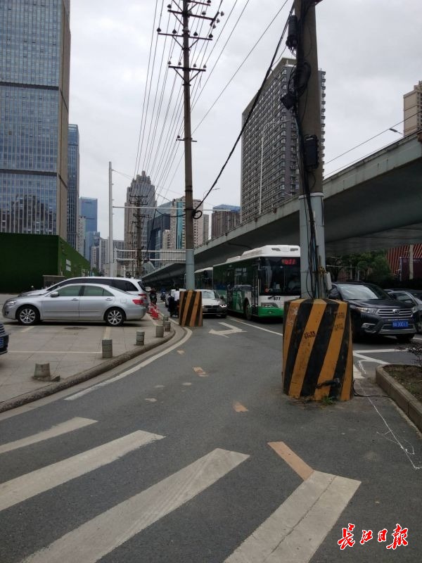 道路拓寬了,但路邊的電桿未同步遷移,站在路中間成了路障。6月17日,長江日報報道《這些占道電桿還要“站”多久》曝光了市內多處電桿占道影響市容、威脅行車安全的路段。以武昌中北路興國南路路口為例,該路口右轉車道上立著兩根電線桿,電線桿底部砌著水泥墩,一根電桿水泥墩就快占去路面的三分之一,導致路口時常發生擦碰事故。