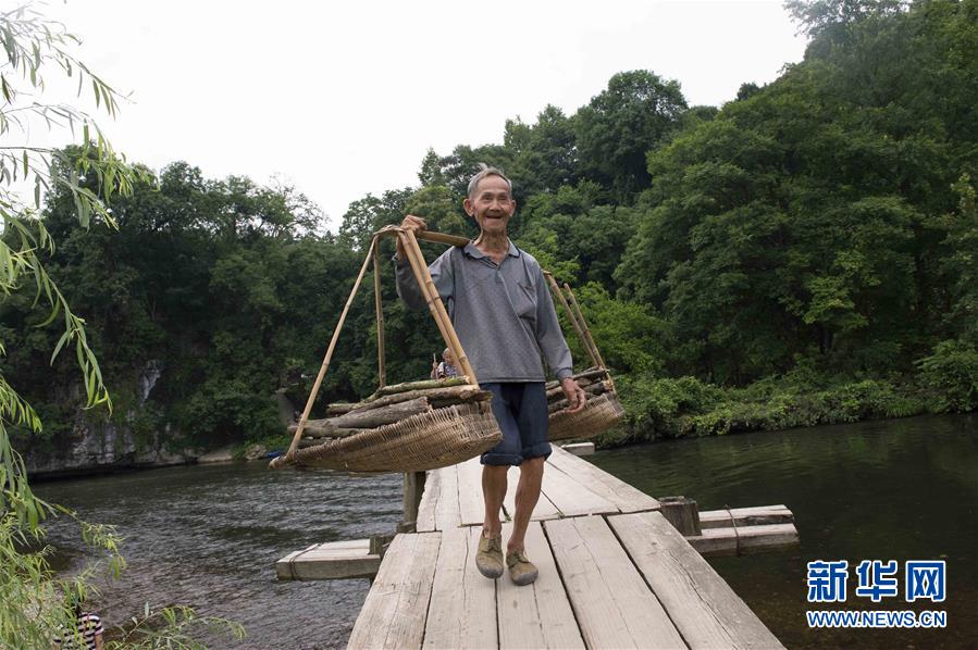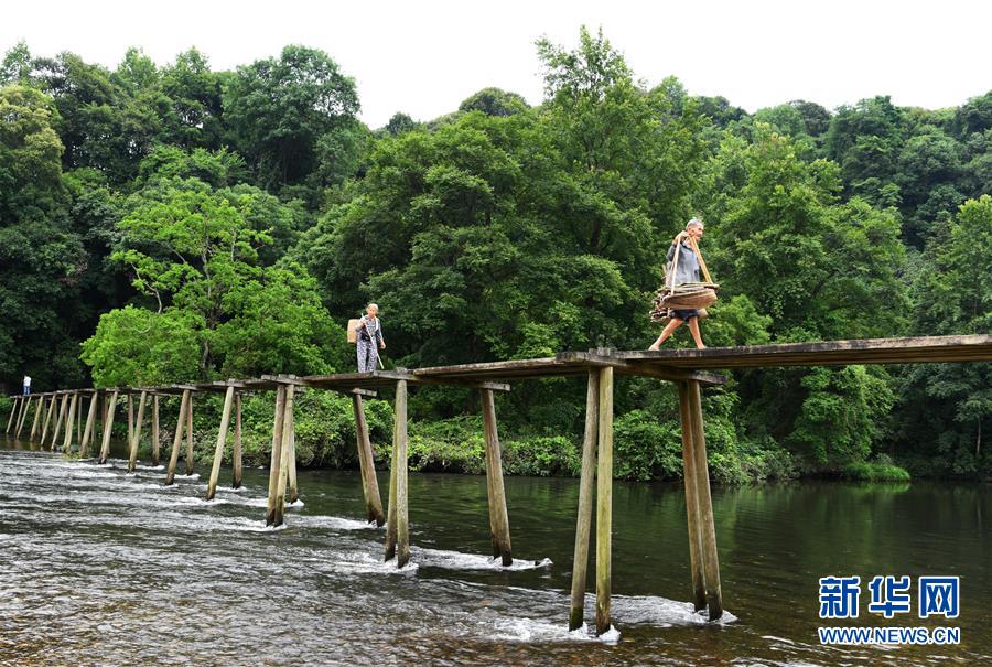 村民走過位于貴州省黎平縣高屯街道上少寨村的紅軍橋(7月2日攝)。新華社記者 楊文斌 攝