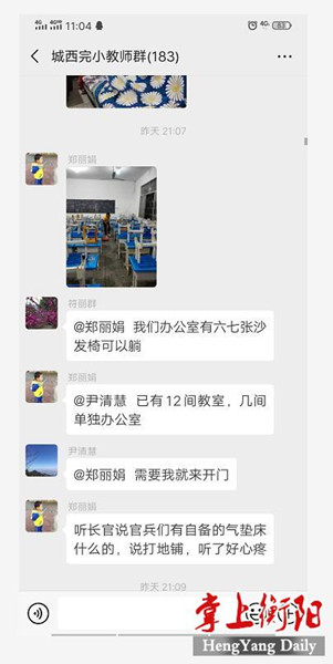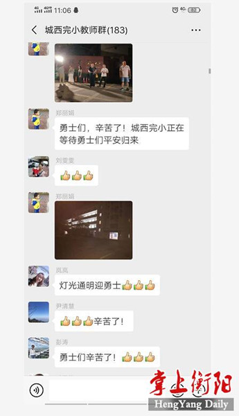 城西完小教師微信群里炸開了鍋,大家紛紛呼叫負責接待的教師。圖片來源:掌上衡陽客戶端
