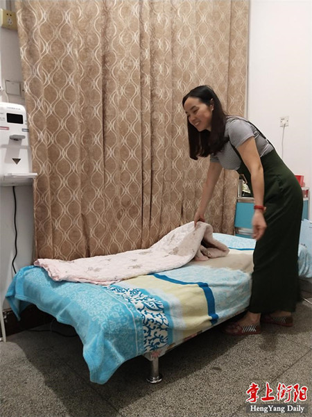 學校教師用沙發椅給官兵鋪床。圖片來源:掌上衡陽客戶端
