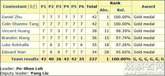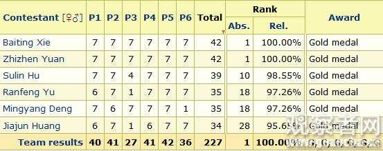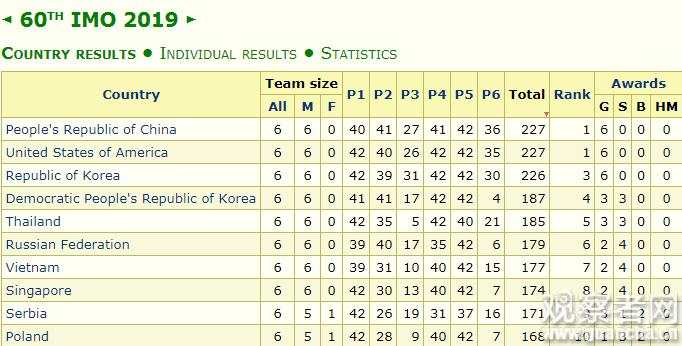 值得注意的是,IMO網站顯示,參賽者個人滿分為42分,個人金牌分數線為31分。而中國誕生了2名滿分選手,且6名隊員均摘得金牌,這也是8年來中國隊員再次全部摘金。