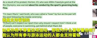 賽后,斯科特接受BBC采訪時回應了拒絕合影的理由,稱他認為孫楊沒有尊重游泳這項運動,那他也沒理由尊重孫楊,還表示所有游泳參與者都會支持霍頓。