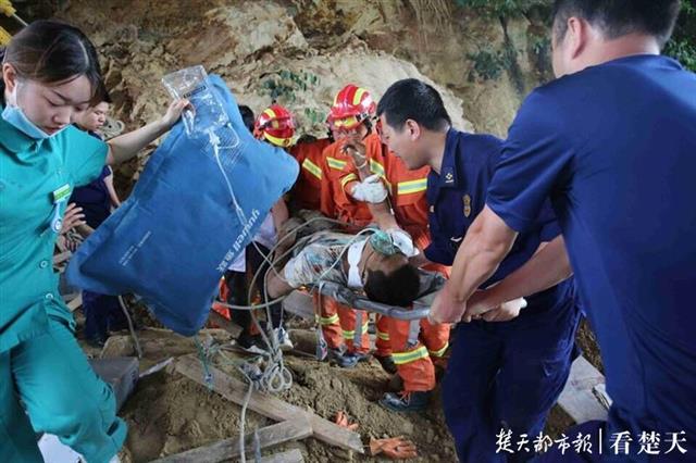 楚天都市報7月24日訊(記者關前裕通訊員蔣鋒)7月24日上午8時25分,十堰市張灣區安溝橋道路施工工地發生坍塌,一名工人被埋,生命危在旦夕。十堰市消防救援支隊官兵在塌方體下用自己的身體筑起一道“人墻,歷經一小時將其安全救起。