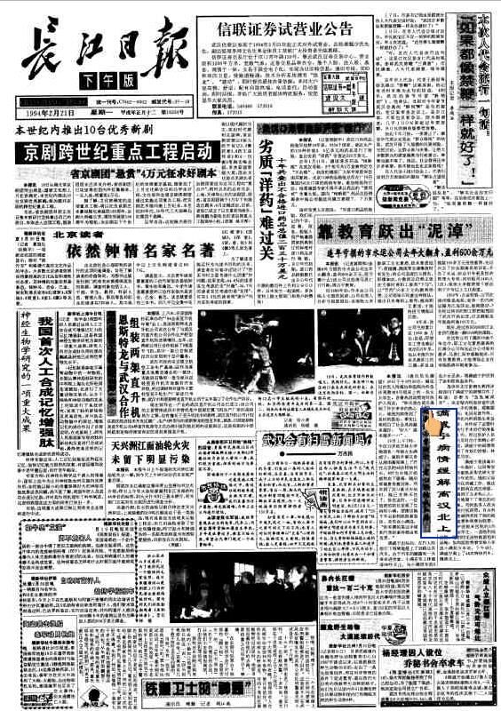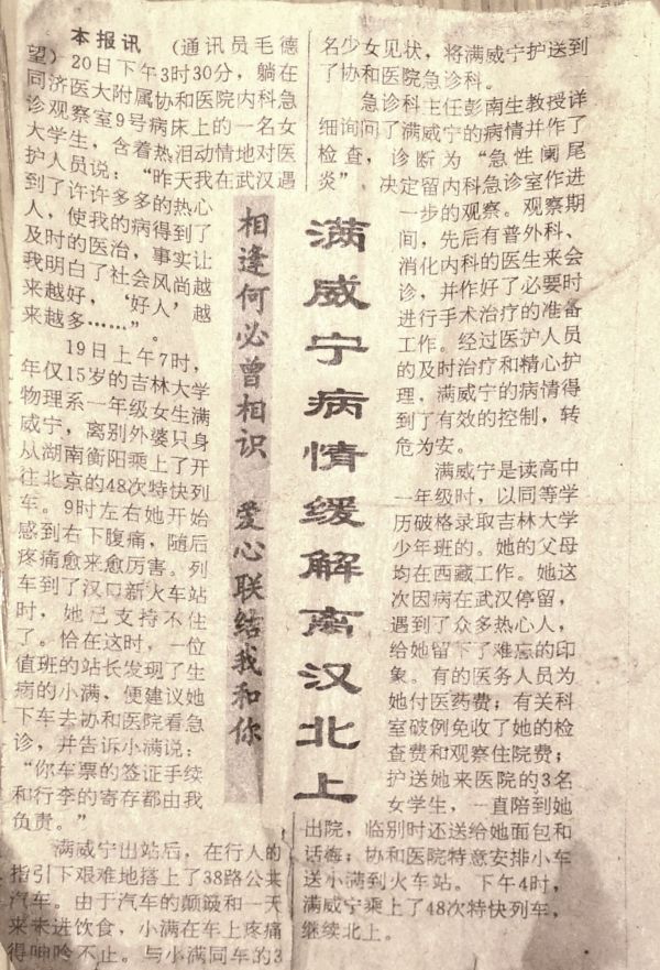 1994年2月21日,長江日報曾刊發滿威寧突患疾病在漢獲救的故事。