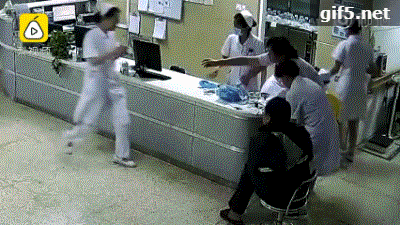 隨后,四五位值班醫護人員為外賣小哥找了個凳子讓他坐下,免費為他清洗、包扎傷口。
