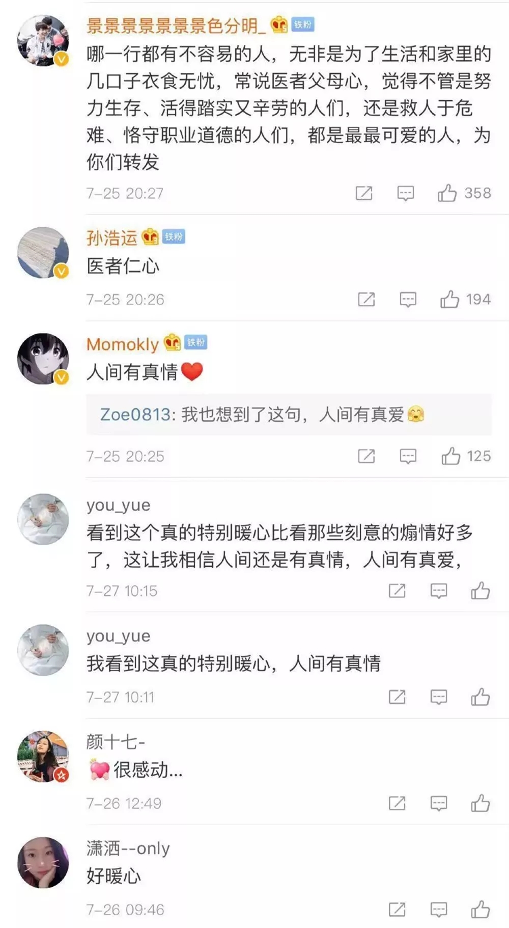 這段視頻在網上傳播后,網友們被勤奮努力的外賣小哥和暖心負責的醫務人員感動,紛紛點贊。