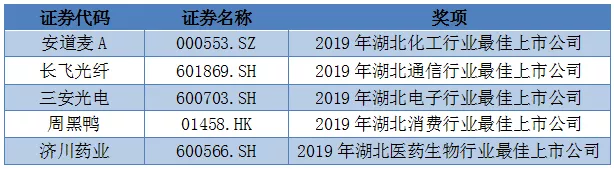 2019年度(首屆)湖北最佳上市公司評選