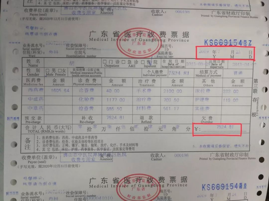 6年后補交的住院費發票