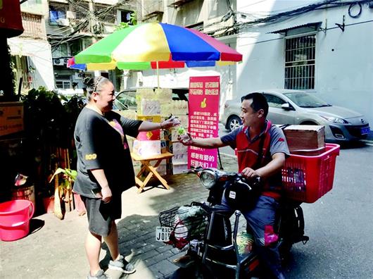 昨日,位于江漢區花樓街東民社區的“愛心補給站”,連續第二年開張了,第一天就送出716瓶水。