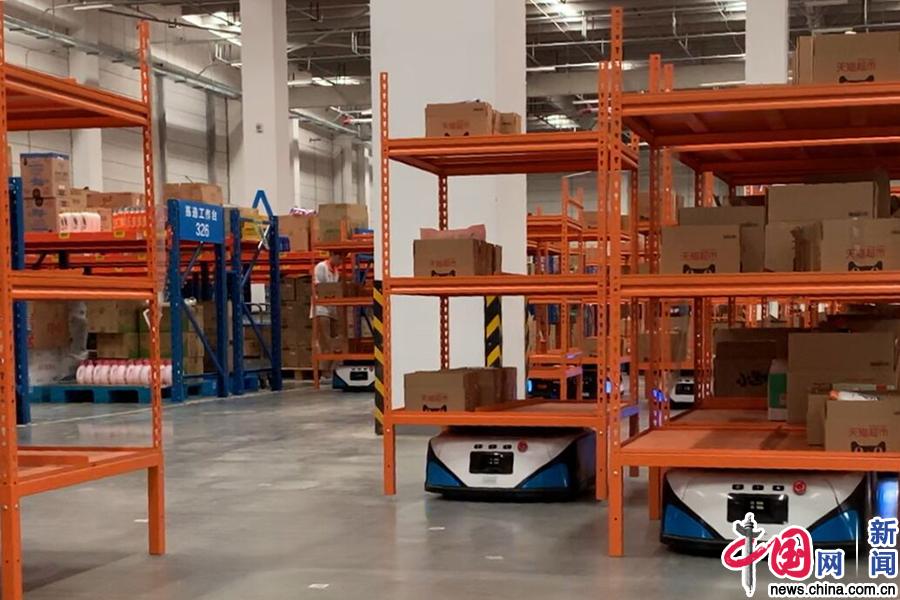 無人倉庫里的機器人“操作工”。中國網記者 劉維佳/攝