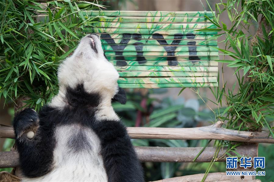 8月1日,在馬來西亞吉隆坡附近的馬來西亞國家動(dòng)物園,大熊貓寶寶“誼誼”在寫有自己名字的竹簡旁玩耍。 當(dāng)日,馬來西亞將在馬出生的第二只雌性大熊貓寶寶取名為“誼誼”?!罢x誼”是中國旅馬大熊貓“興興”和“靚靚”所生的第二只大熊貓寶寶,于2018年1月14日出生。 新華社記者 朱煒 攝