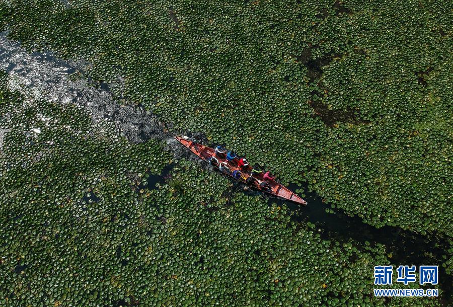 8月2日,在印控克什米爾首府斯利那加,人們?cè)谶_(dá)爾湖上泛舟。 達(dá)爾湖是印控克什米爾夏季首府斯利那加市最大的湖泊。相對(duì)獨(dú)立的自然環(huán)境造就了當(dāng)?shù)鼐用裥杏诤?、棲于水畔的?dú)特生活方式。 新華社發(fā)(賈維德·達(dá)爾攝)