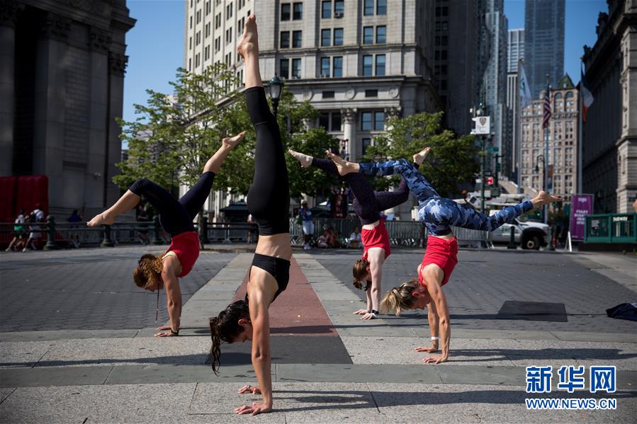 8月3日,在美國紐約曼哈頓,人們?cè)陂_放的街道上健身。 當(dāng)日,紐約舉行“2019夏日街道”活動(dòng)。從早七點(diǎn)到下午一點(diǎn),曼哈頓部分路段禁止機(jī)動(dòng)車通行,供人們騎行、健身或參加各種臨時(shí)設(shè)置的娛樂項(xiàng)目。據(jù)介紹,紐約“夏日街道”活動(dòng)一般在每年8月的前三個(gè)星期六舉行。 新華社發(fā)(郭克攝)