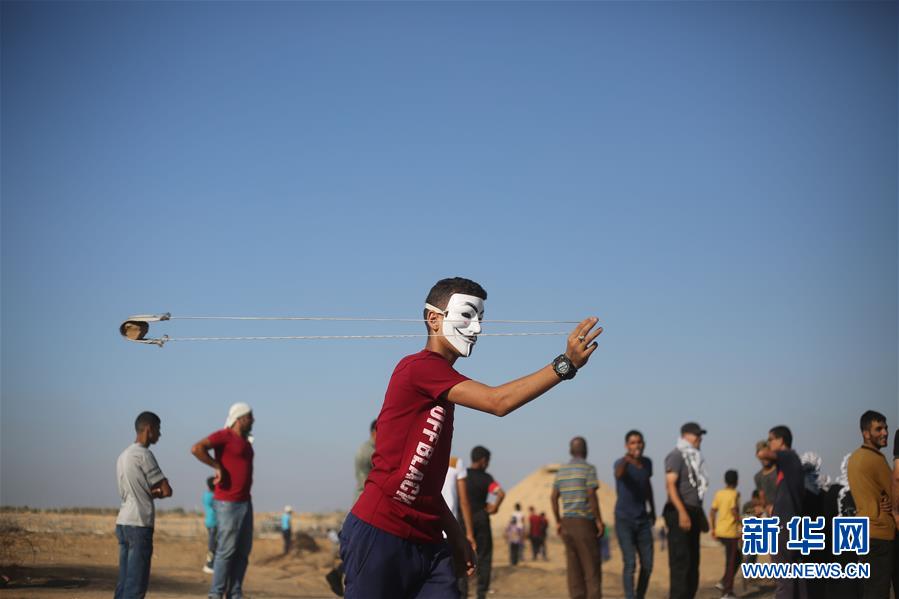 8月2日,在加沙地帶與以色列交界地區(qū),巴勒斯坦示威者向以色列士兵投擲石塊。 當(dāng)日,巴勒斯坦民眾在加沙地帶邊境地區(qū)舉行抗議活動(dòng),并與以色列士兵發(fā)生沖突,造成至少51名巴勒斯坦人受傷。 新華社發(fā)(哈立德·奧馬爾攝)
