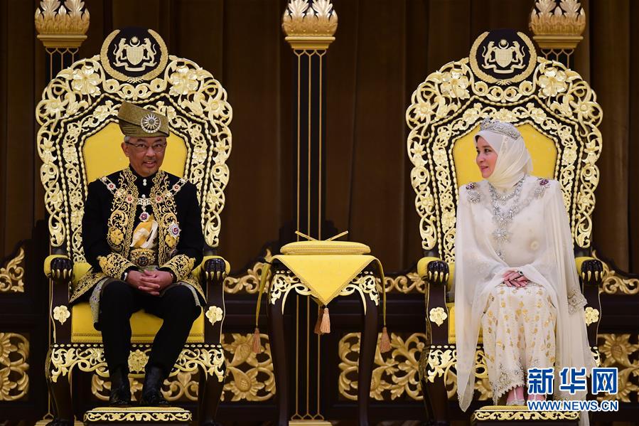 7月30日,在馬來西亞吉隆坡,馬來西亞第16任最高元首阿卜杜拉(左)出席登基儀式。 當(dāng)日,馬來西亞第16任最高元首阿卜杜拉正式登基。 新華社發(fā)(馬來西亞新聞局)
