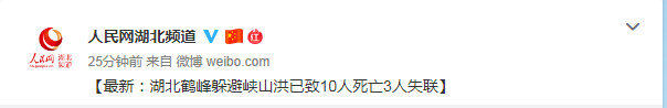 8月5日,@人民網(wǎng)湖北頻道 發(fā)布消息稱(chēng),湖北鶴峰躲避峽山洪已致10人死亡3人失聯(lián)。