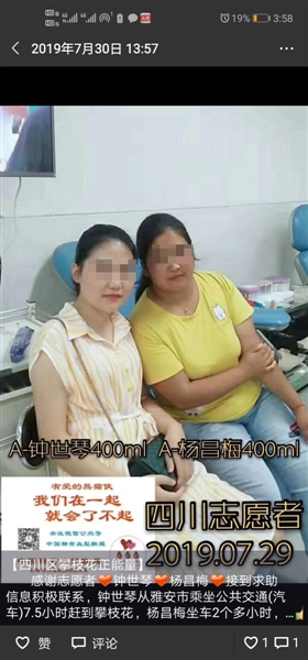 “因親屬血型不符、攀枝花市中心血站還沒找到合適血型的供者,我們很擔(dān)心媽媽7月10日的第二次手術(shù)不能按預(yù)期進行?!敝芟壬嬖V記者,在當(dāng)?shù)蒯t(yī)院和血站“熊貓血”缺乏的情況下,家人們也想了很多辦法,但是好多天都未找到合適血源,后來“我們多方打聽了解到“中國稀有血型聯(lián)盟”和QQ全城助力平臺可以幫忙推送信息,尋找稀有血型志愿者?!?/p>