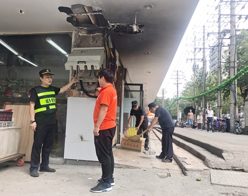 8月9日下午15時許,位于硚口區(qū)崇仁路與中山大道交匯處的衛(wèi)斌生鮮超市南邊門外墻上的高壓開關(guān)突然發(fā)出“啪啪啪”的巨響并閃出耀眼的電火光,煙霧和焦糊味瞬間彌漫開來。當時店內(nèi)30多位正在銷售和選購商品的店員與顧客有些慌亂,因爆燃的高壓開關(guān)距離門很近,大家一時沒弄清楚狀況,都不敢出門疏散。