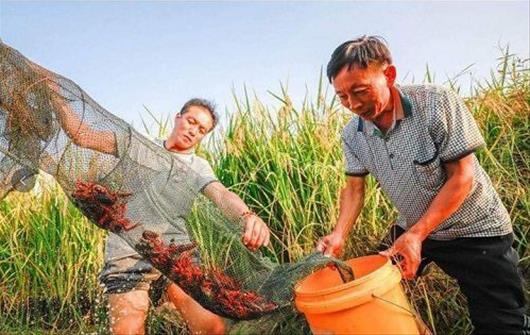 “我們合作社200多畝水田,投放蝦苗種水稻,”8月8日,孝昌縣衛店鎮南新村貧困戶王進東(左一)今年聯合了村里20多戶貧困戶成立稻蝦種養合作社,預計今年收益30萬元以上。(農村新報通訊員胡長順攝)