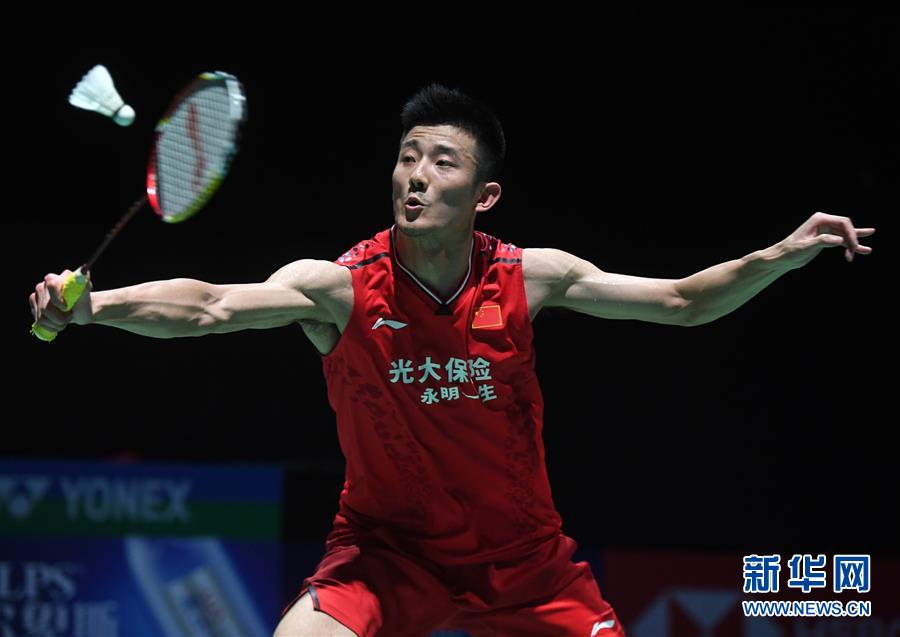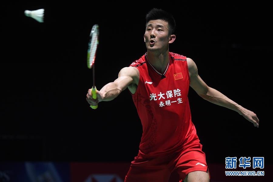 8月22日,中國選手諶龍在比賽中回球。 當日,在瑞士巴塞爾舉行的2019年世界羽毛球錦標賽男子單打第三輪比賽中,中國選手諶龍以2比1戰勝中國香港選手伍家朗,晉級八強。 新華社記者李俊東攝