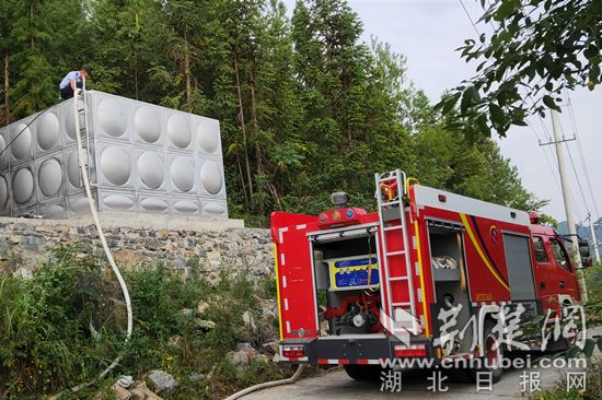 連日干旱影響群眾生活用水,利川民警義務(wù)送水解民憂。(通訊員 供圖)