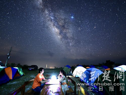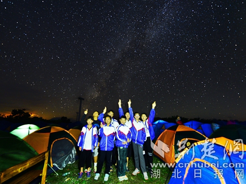 在銅鼓包的露營地,來自孝感的游客朱先生邊扎帳篷邊對記者說,他們一行5家人相約到此避暑觀星,大人們一起做飯,孩子們圍著數星星,體驗非常好。
