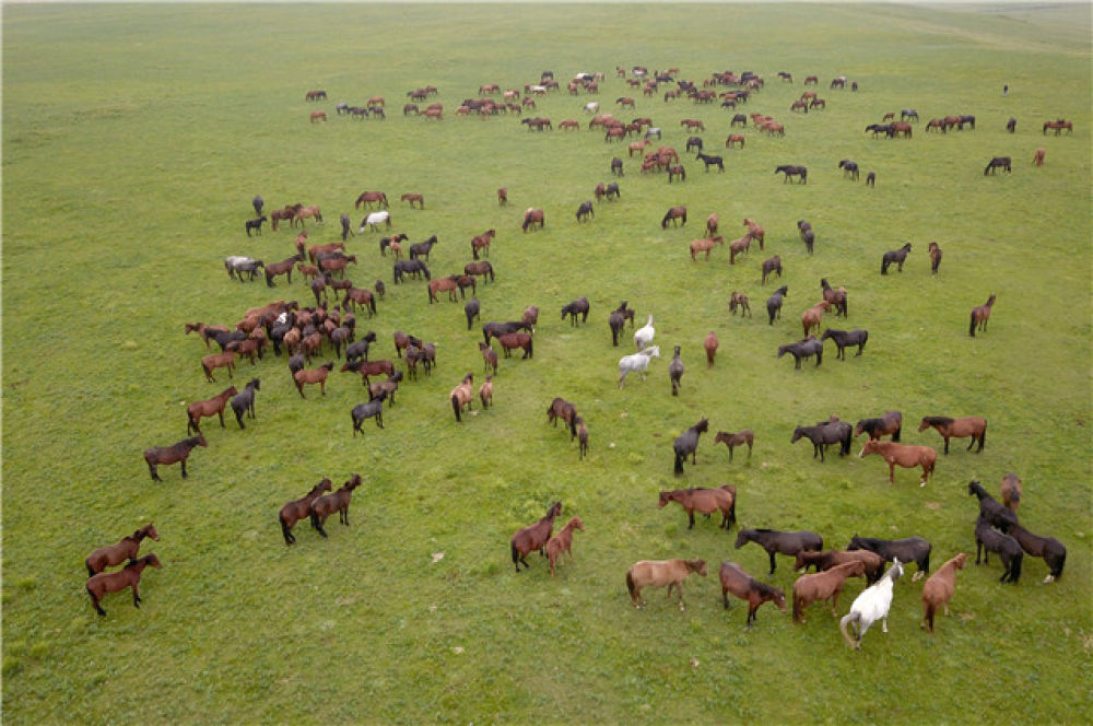 這是在中農(nóng)發(fā)山丹馬場(chǎng)有限責(zé)任公司一場(chǎng)拍攝的馬群(8月21日無(wú)人機(jī)拍攝)。新華社記者 范培珅 攝