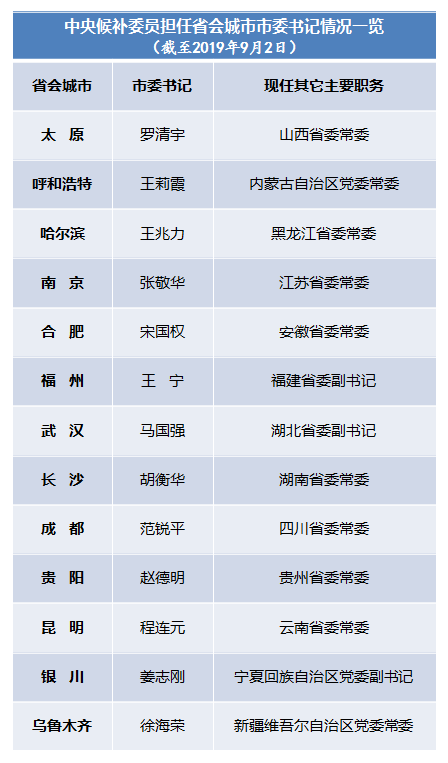上述表格中的干部,除王莉霞、馬國強、趙德明外,其余人在被選舉為十九屆中央候補委員時已擔任該職務。