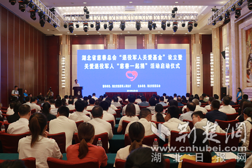 湖北省慈善總會"退役軍人關愛基金"設立暨關愛退役軍人"慈善一起捐"活動啟動儀式在武漢舉行。通訊員供圖。