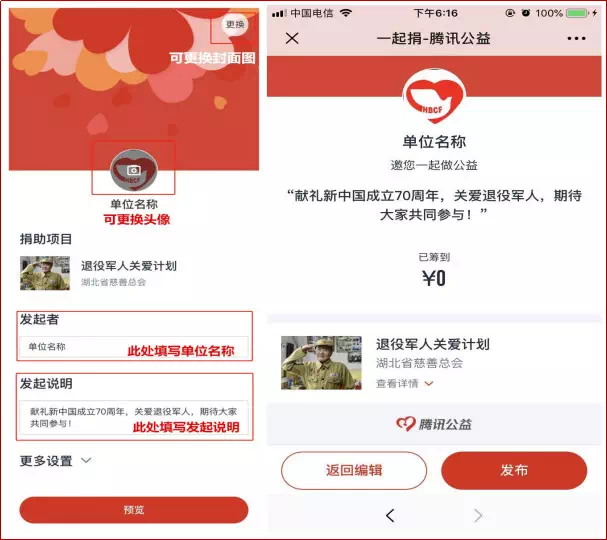第二步:點擊“發布”,呼朋喚友,轉發動員,一傳十、十傳百、百傳千,讓困難退役軍人感受到大家溫暖的力量!