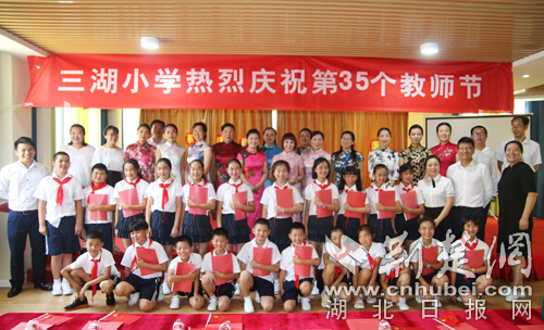 荊楚網客戶端—荊楚網消息(通訊員湯曉曼、劉欣然、胡陳成)“我和我的祖國,一刻也不能分割,無論我走到哪里,都流出一首贊歌”,一陣陣歌聲在三湖小學里回蕩。9月8日上午,云夢縣三湖小學舉行“情系教育,祝福祖國”慶祝第35個教師節系列演出。