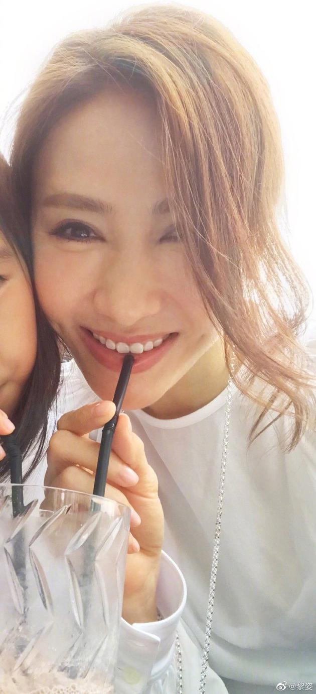 照片中,黎姿扎著頭發,劉海隨意披散下來,皮膚白皙光滑,紅唇白齒,一臉甜美燦爛的笑容,露出迷人的梨渦,和女兒頭挨頭臉貼臉,十分的親密,猶如姐妹,畫面非常的幸福溫馨。