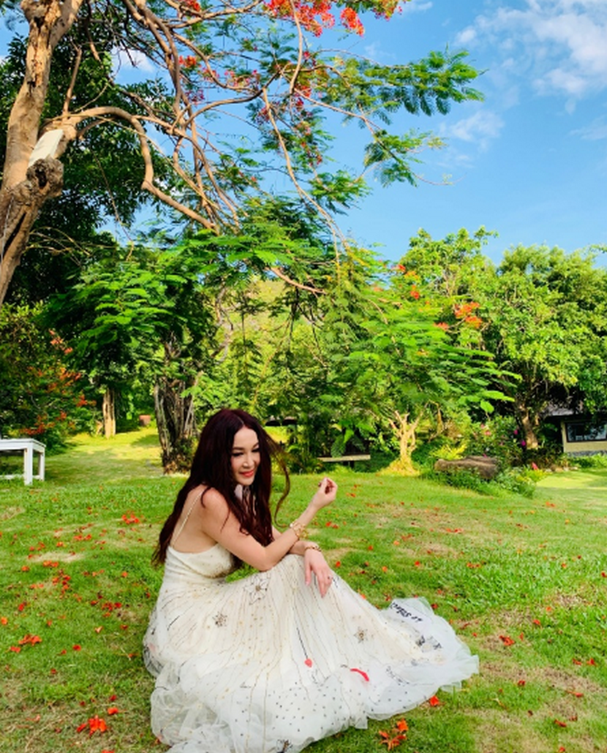 她換了一條粉色長裙,少女感十足,為她增添了不少可愛色彩。53歲的她在外人眼中,還跟18歲的少女一般,浪漫可愛,滿懷憧憬。