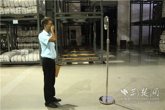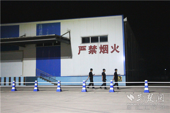 荊楚網客戶端—荊楚網消息(記者張城、王冬)“您好!請出示您的證件并交出火種。”9月13日晚10點,中央救災物資武漢儲備庫燈火通明。忽聞有外來車輛靠近大門,保安隊長鄭小龍迅速走出值班室,上前問詢。車輛登記進入后,庫區又恢復了平靜。
