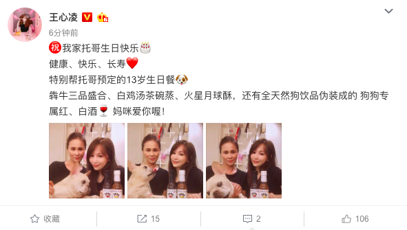 16日晚,王心凌和媽媽一起為愛犬慶祝13歲生日并發文曬照:“祝我家托哥生日快樂,健康、快樂、長壽,媽咪愛你喔!”王心凌的媽媽抱著狗狗一同出鏡,母女倆模樣神似,擁有同款高顏值。