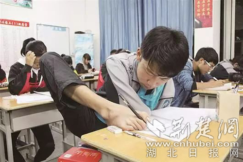 中國大學生自強之星獲得者趙楚南同學正在教室寫作業。