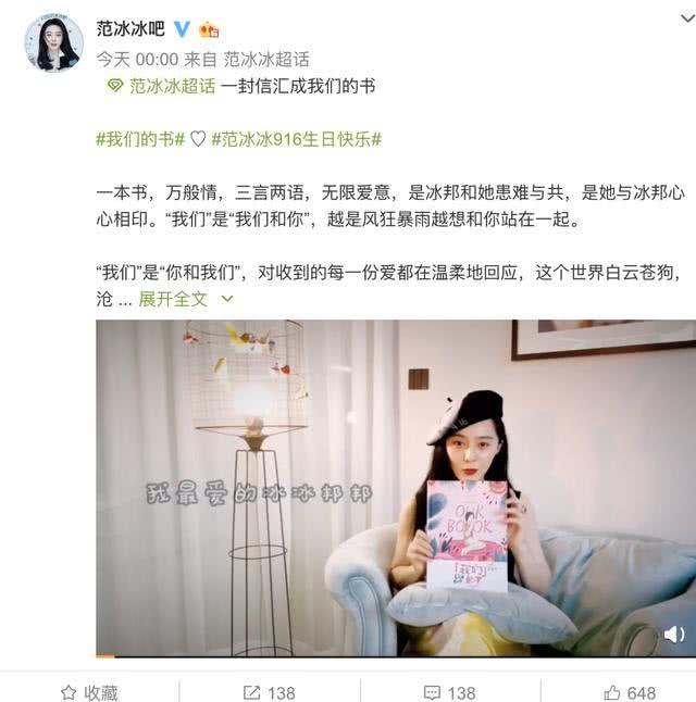Vlog中她表示,生日當天她收到了很多粉絲和品牌方的禮物,每一樣禮物都已認真過目。但是唯有這本《我們的書》的禮物彌足珍貴,這是她與粉絲“冰冰邦邦”最真摯的感情了。就像粉絲們說的那樣:一本書,萬般情,三言兩語,無限愛意,是冰邦和她患難與共,是她與冰邦心心相印。“我們”是“我們和你”,越是風狂暴雨越想和你站在一起。